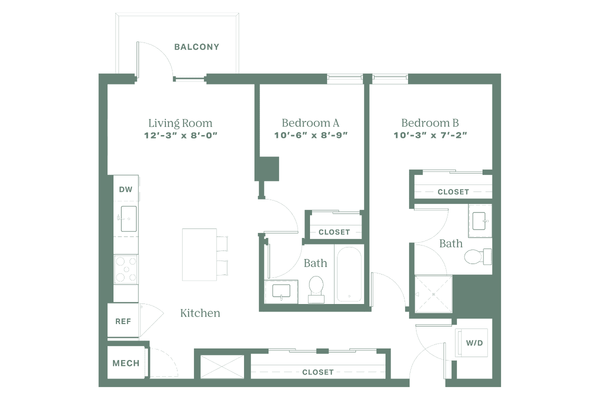 Make your new favorite memories in The Marfa. This two-bedroom apartment is the perfect backdrop for wherever your weekends may take you, whether it’s a night out in Tempe or a movie night on the sofa with your roommate. Spacious bedrooms with ensuite bathrooms let you create a space all your own, and the large coat closet offers extra storage to keep life organized.