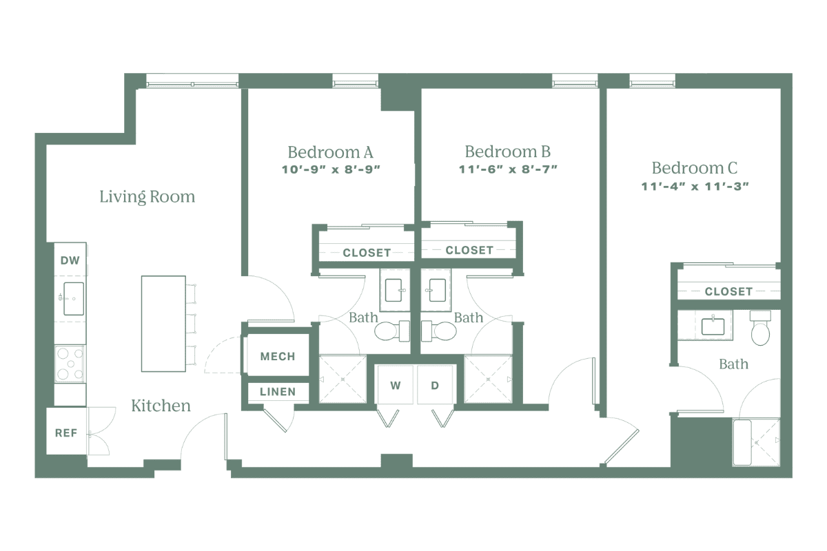 Do it all in The Pothos, one of Rambler’s three-bedroom floor plans. This oversized apartment has enough space for you and three of your best friends to catch a game in the living room or get some peace and quiet in each of your own bedrooms with ensuite baths. This blend of luxury and style will become the perfect backdrop for some of your best memories.