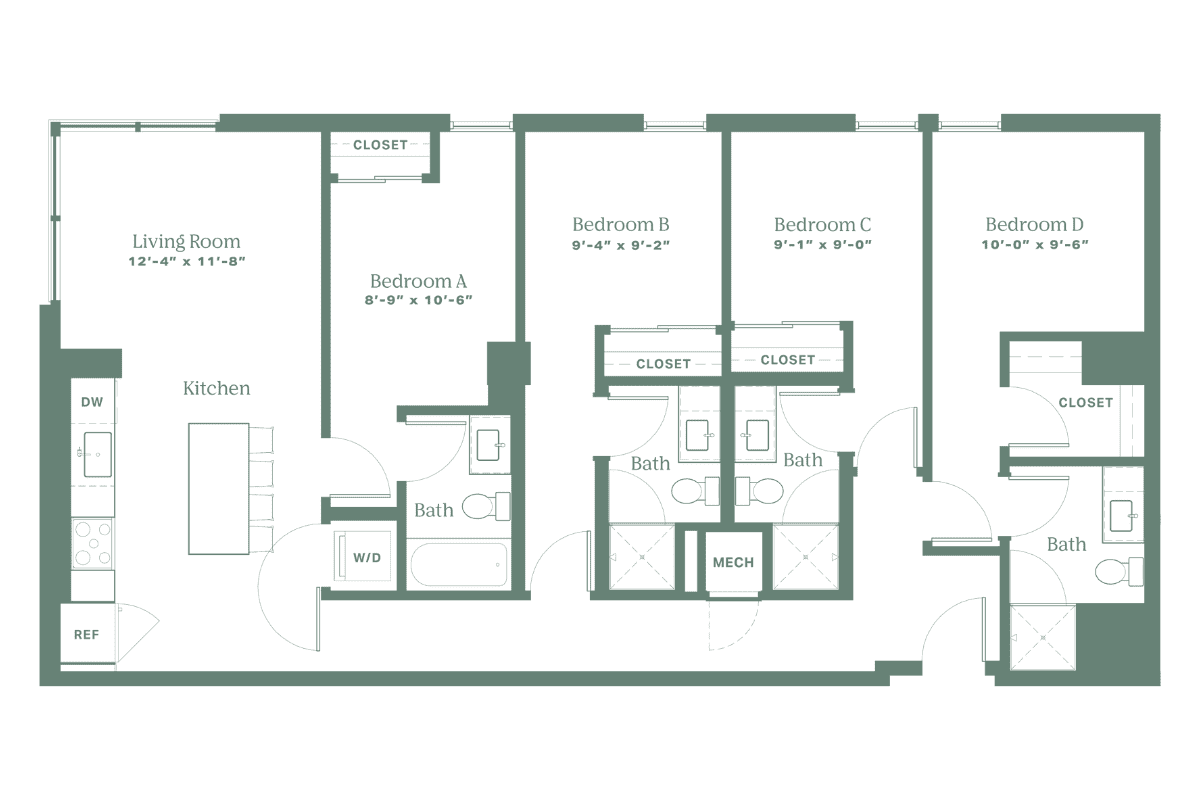 The Sotol offers a cozy shared space with plenty of room to retreat. Whether it’s late-night takeout in the kitchen or down time in your room, this layout gives you space to live on your terms.